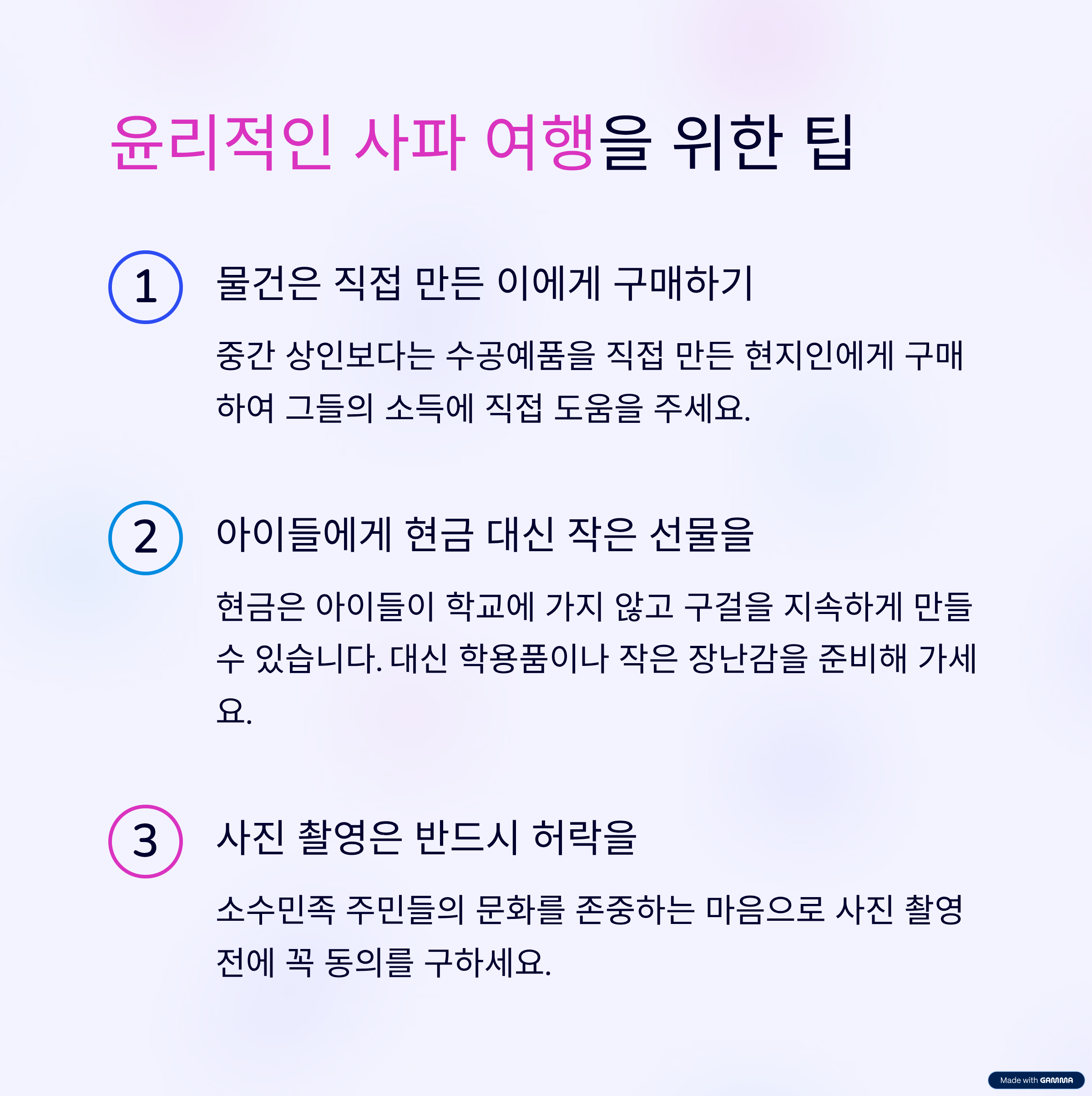 다음은 제가 직접 경험하며 배운 몇 가지 윤리적 여행 팁입니다.