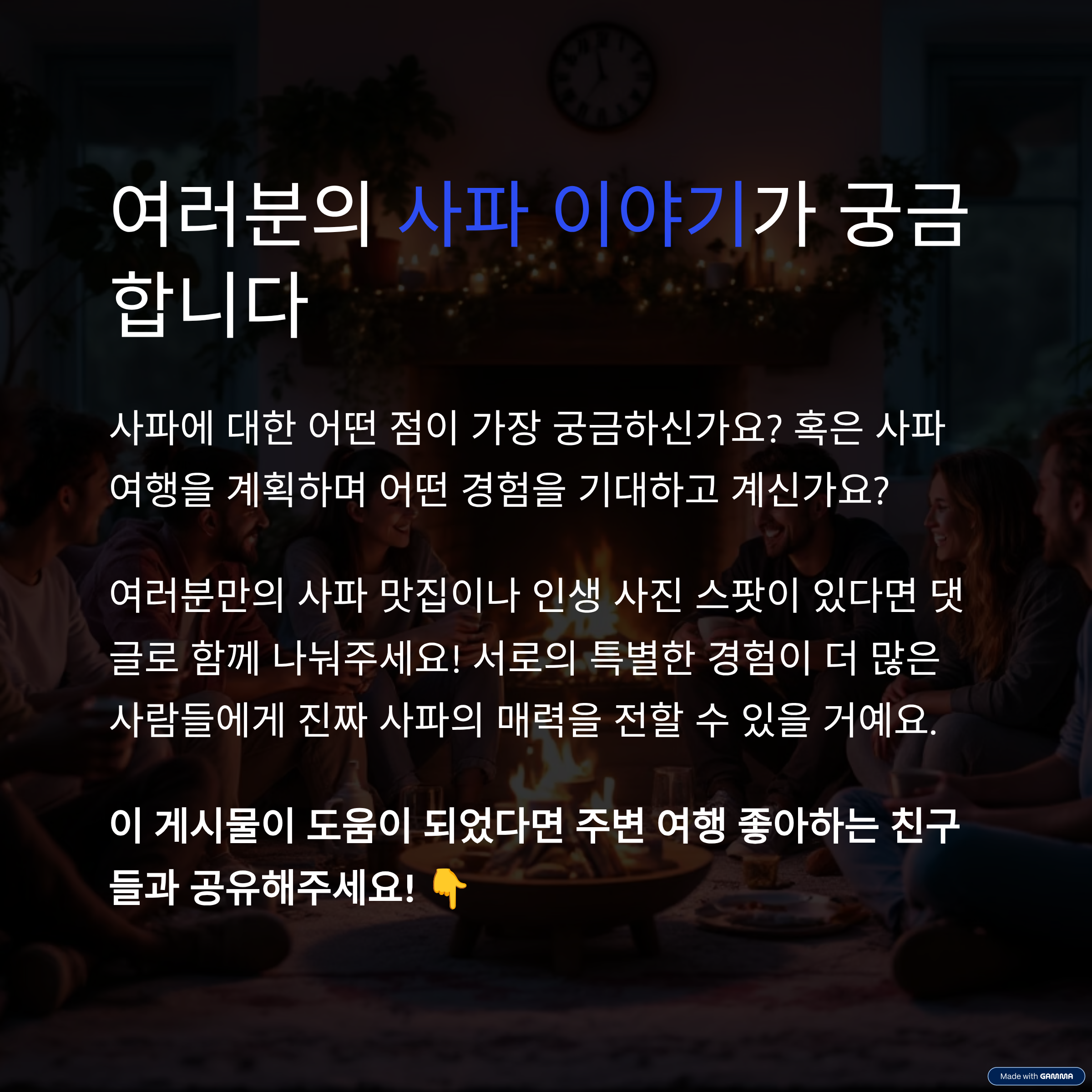 이 글을 읽고 사파에 대한 어떤 점이 가장 궁금해지셨나요? 혹은 사파 여행을 계획하며 어떤 경험을 하고 싶으신가요? 댓글로 여러분의 이야기를 공유해 주세요! 제가 아는 선에서 기꺼이 답변해 드리겠습니다. 또한, 여러분만의 사파 숨겨진 맛집이나 인생 사진 스팟이 있다면 함께 나눠주세요!