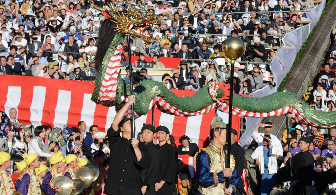 1634년부터 시작된 유서 깊은 축제로, 매년 10월 7일부터 9일까지 신에게 감사를 표하는 행사입니다. 나가사키는 예부터 여러 나라와 교류가 많아, 축제에서도 중국식 용춤이나 네덜란드 배를 본뜬 화려한 행렬을 볼 수 있습니다. 마치 여러 나라를 한자리에서 여행하는 기분을 느끼실 수 있을 거예요.